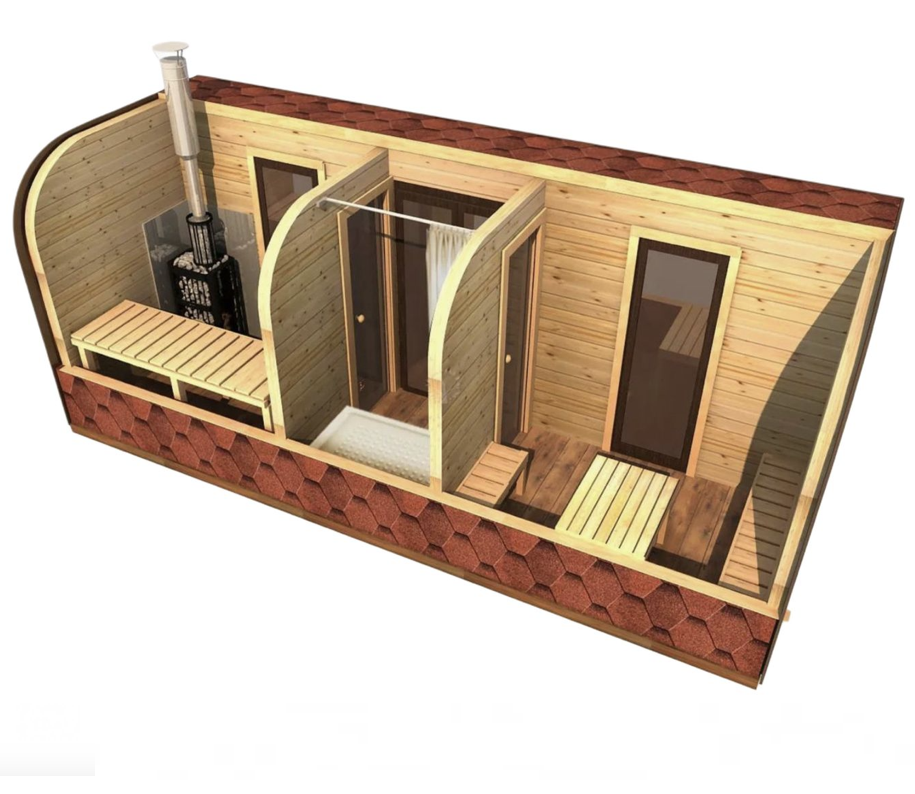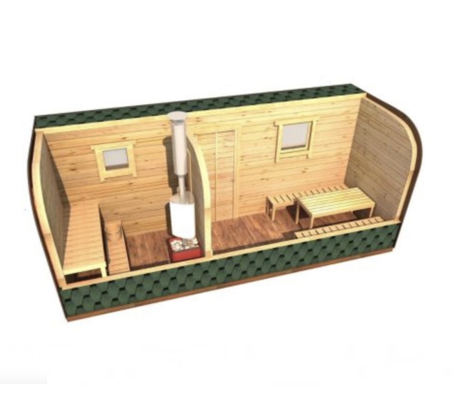 Размеры бани парус зависят от количества внутренних отделений. Например, могут быть модели с парной и предбанником, парной и моечной с предбанником.